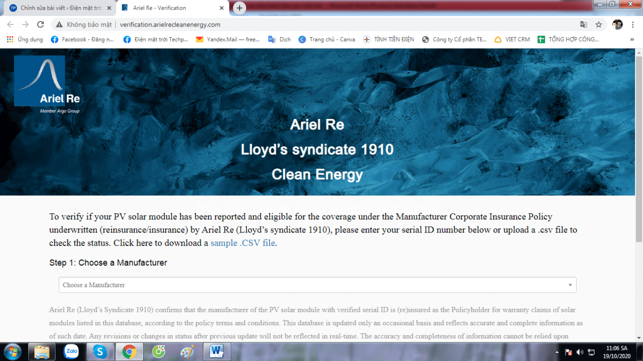 Vậy nên khi mua tấm pin mặt trời người mua có thể tra cứu được mình đã mua hàng chuẩn chưa, có được bảo hành 25 năm hay không tại: http://verification.arielrecleanenergy.com/